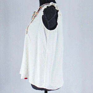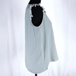 Aruba Blue Sleeveless Blouse, Ruffled Detail, Floral Embroidery sz M