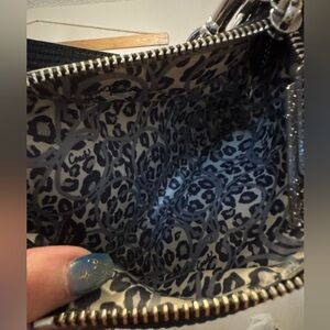 Coach Poppy Black Patent Wristlet with light grey Leopard Interior