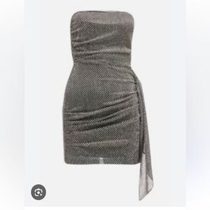 This strapless mini dress by Ramy Brook features a chic black and silver/platinum dot design, perfect for making a statement. Side zipper and elasticized bust area. Size 0 but fits like a 2. (34 bust)
