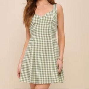Lulus Pristine Chicness Green Gingham Sleeveless Bustier Mini Dress - Size S