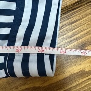 Pants: hits at ankle: approx. inseam: 30", woven fabric, mid-rise elastic waist