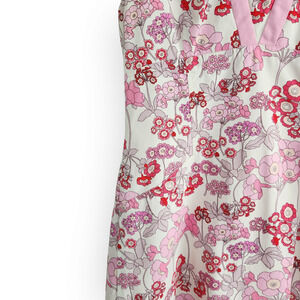 In good used condition, a white and pink floral empire waist a line dress in size 10 by Kay Unger New York.