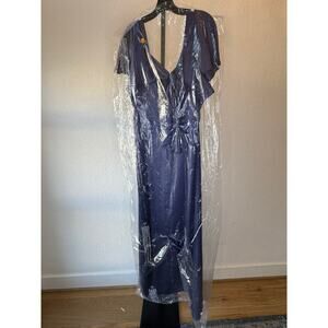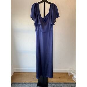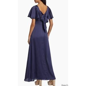 Sachin & Babi's Aurora gown flaunts a stunning squareneck framed by flutter short sleeves. Finished in elegant satin, this classic piece features an A-line silhouette.