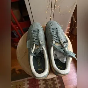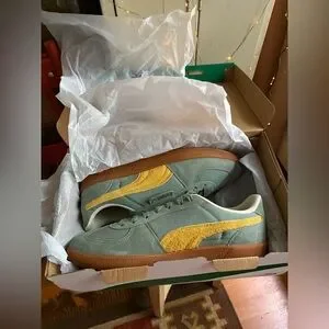 New in original box! Iconic Puma shoes straight from the Puma archives in a retro style. Classic terrace shoe with a T-toe construction. Men’s size 11 in the color Green Moon -Sunny Yellow