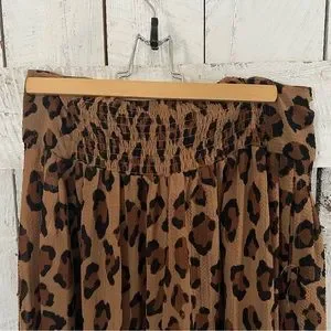 Stylish wide leg pants with a bold leopard print. Comfortable and chic design. Perfect for casual or dressy occasions.