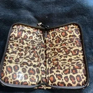 LUG Zip Around Sleeper Wallet Quilted Leopard Print NWOT 9” x 4”