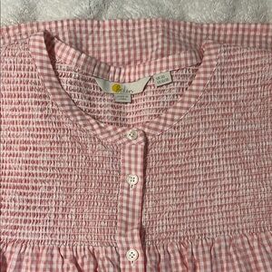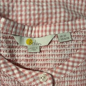 Pink and White Boden Blouse with Puff Sleeves