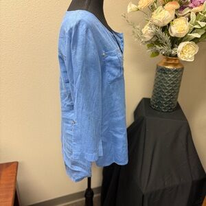 Jones New York 100% Linen Blue Zip Front Top – Size M