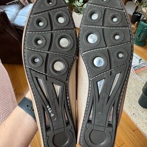 Elegant tan leather loafers with classic design. Ideal for versatile styling. Never worn. Size not listed but I would guess a 9 - I am a 9.5 and they fit me but are snug.