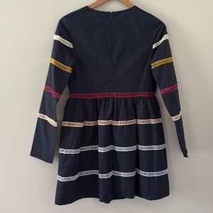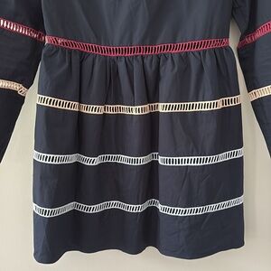 English Factory A Line Dress Cotton Mini Stripe Lattice Cutout Detail Navy Sz S