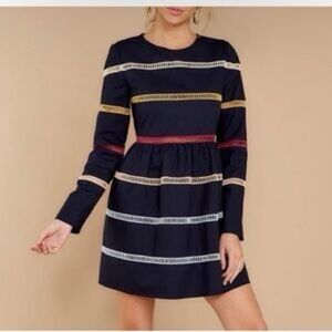 English Factory A Line Dress Cotton Babydoll Mini Stripe Lattice Cutout Detail Navy S
