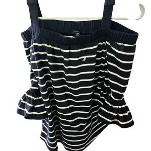 Nautica Navy and White Striped Off-Shoulder Top PTP 15 L 22