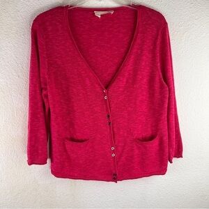 EILEEN FISHER Pink cardigan, V-neck with double button closure. 2 pockets and gray buttons