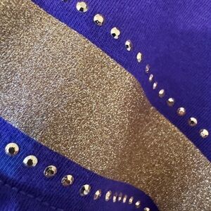 Features: oversized design, V-notch neckline, glitter print with studs, team logo on front chest