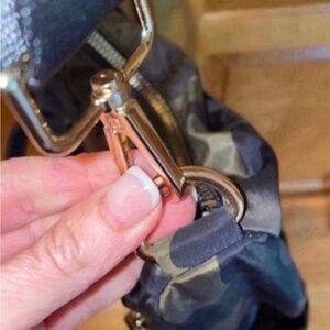 Nylon Camouflage Backpack / Crossbody Bag/ Purse w/Gold Accents. .Bag is 12” x 13” (without strap)