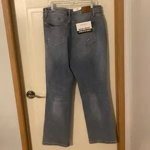 Judy Blue High-Rise Dad Jean Distressed Cris Cross Waistband Light Wash