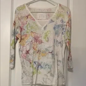 Coldwater Creek Pink and Yellow Fitted 3/4 Sleeve Blouse