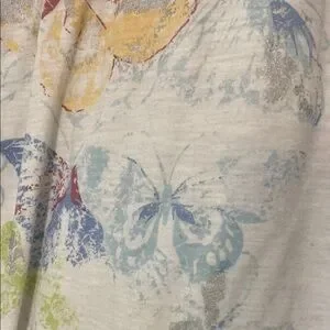 This elegant blouse features a fitted design with a delicate watercolor floral print in pink and yellow hues. The 3/4 sleeves and light, airy fabric make it perfect for spring or summer wear, while the rounded neckline adds a touch of sophistication. Either never worn or worn once
