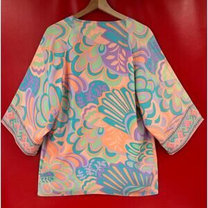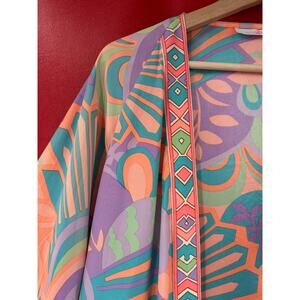 Alice & Trixie 100% Pastel Silk Open Front Kimono Sample Paisley Geo Top Size S