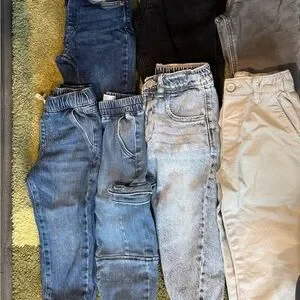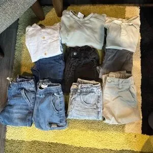 A collection of kids' clothing including tops and pants in various colors. Perfect for casual wear- autumn winter season.