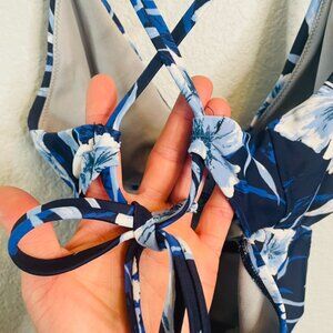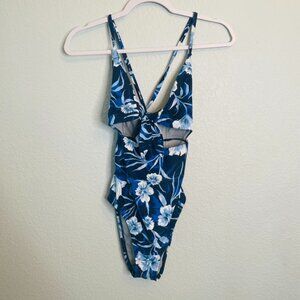 Speedo Blue Floral One Piece Peekaboo Tie Front Swimsuit | Size 8