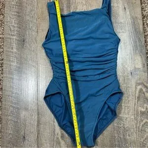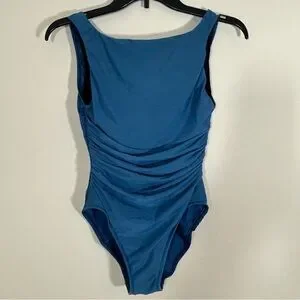 Miraclesuit Ruched One Piece Swimsuit Size 10 Teal Blue Slimming Lined Underwire