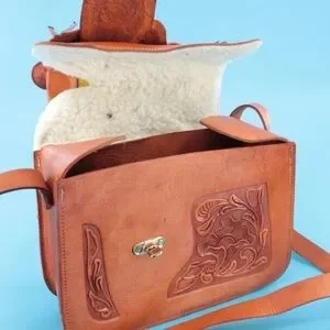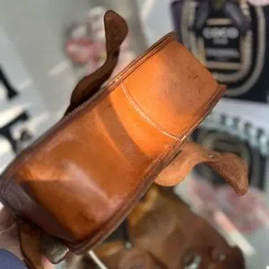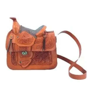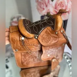Embrace a unique style with this saddle-inspired tan leather bag. Perfect for adding a touch of western flair to any outfit.
