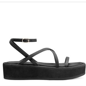 Elegant black sandals by Stuart Weitzman. Features strappy design and ankle strap. Perfect for any occasion.