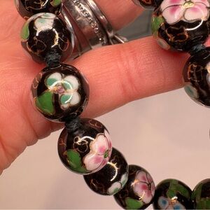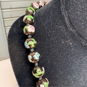 Vintage Cloisonne Beaded Enamel Floral Ball Necklace 24" Long