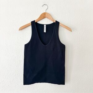 Athleta Womens Aurora Black Seamless Ribbed Waist Length V-Neck Tank Top, sz Small