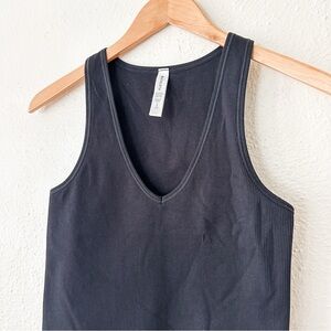 Athleta Womens Aurora Black Seamless Ribbed Waist Length V-Neck Tank Top