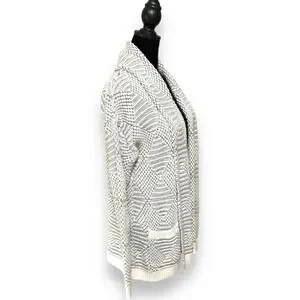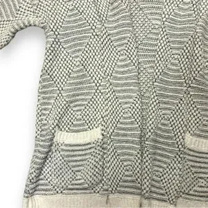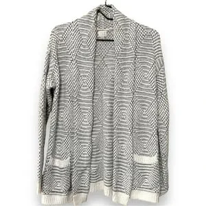 A New Day Cozy Gray and White Geometric Pattern Print Relaxed Fit Open Cardigan