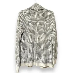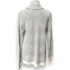 Long sleeve, thick collar keeps you nice and cozy, white cuffs and gray and white intricate geometric pattern