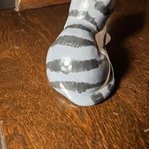 Charming ceramic cat figurine in gray and white. Perfect for cat lovers and home decor enthusiasts.