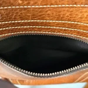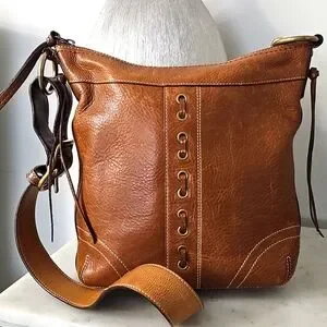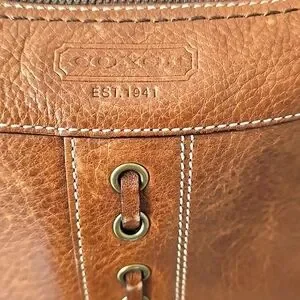 Vintage, Coach Chelsea Laced Duffle Crossbody. Brown hippie-style distressed, pebble soft leather. Coach bag has rivets and lace front detail, contrast stitching, back zippered pocket, tasseled sides, and all brass hardware. Adjustable two-tone crossbody strap. Style #10399. Measures: 10"×11"×2.5". Beautiful Unique, Vintage Bag!🤎