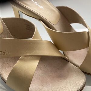 Calvin Klein Cream High Heel Sandals with Crisscross Straps