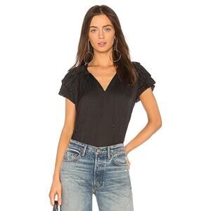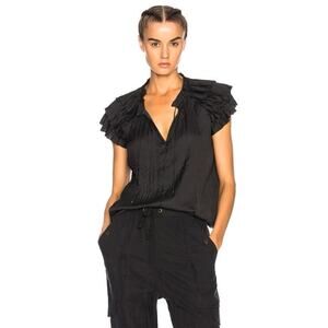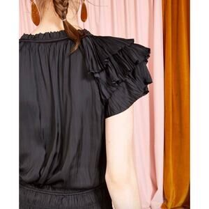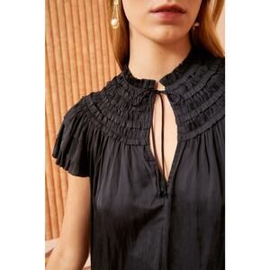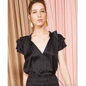 NWT Ulla Johnson Womens Mara Top Noir Black Size 0 Japanese Satin Plisse Pleat