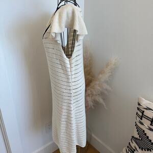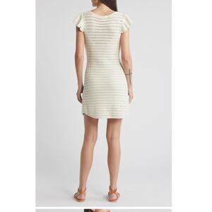 Treasure & Bond Flutter Sleeve Crochet Cream Linen Blend Sweater NEW Large
