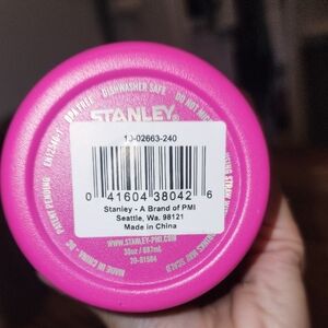 Vibrant pink Stanley tumbler. Perfect for travel and daily use. 30oz, no straw included.