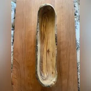 Enhance your kitchen with this elegant natural wood serving bowl. Perfect for storing and serving your favorite foods. Its unique brown finish adds a rustic touch to any setting.