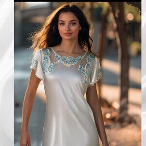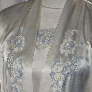 Natori Classics Bridal White Blue Lace Long Gown Robe Peignoir Set, Size…