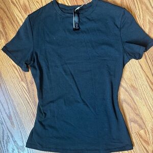 The ultimate everyday tee by SKIMS. This Cotton Jersey T-Shirt in the rich “Soot” black shade is made from a soft, stretchy blend that hugs the body without feeling tight. Flattering, comfortable, and designed for all-day wear, this fitted silhouette is a wardrobe staple.