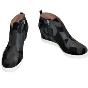 Linea Paolo Felicia Dark Gray & Black Camo Low Wedge Ankle Bootie, Size …