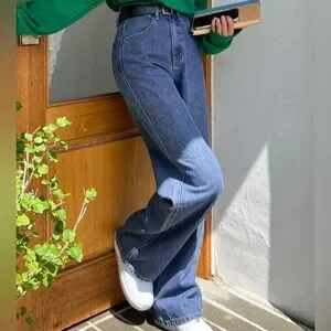 Stylish wide leg jeans. Comfortable fit. Perfect for casual wear.