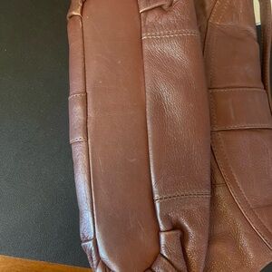Elegant Coach bag with brown leather trim and black fabric. Ideal for versatile styling.