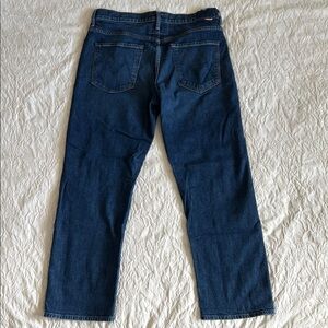 Experience the timeless appeal of MOTHER's blue straight leg jeans, crafted from durable denim that maintains its shape. Features front and back pockets as well as belt loops. The deep indigo color offers a versatile look, perfect for dressing up or down. With a clean and classic design, these jeans are a staple for any wardrobe.