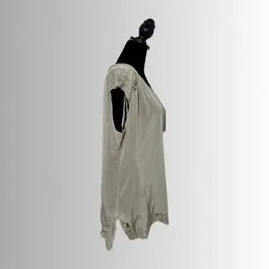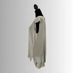 Chico’s 100% Silk, Black Label Champagne Top, Short Laced Sleeves, Size 1/Medium