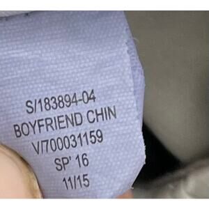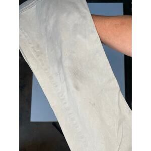 These size 2S chinos are cut in the “Boyfriend Chin” style and offer a laid-back, borrowed-from-the-boys feel—think practical goblincore, minimalist dark academia, or rugged off-duty Sabrina Carpenter. Slightly distressed with some staining on the right knee, adding to their utilitarian and well-loved aesthetic.