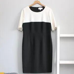 HUGO BOSS Daina White & Black Colorblock Sheath Elbow Sleeves Midi Dress Size 10