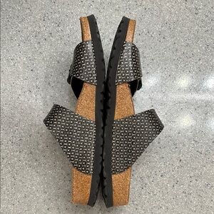 Experience the perfect blend of style and comfort with Papillio's black and brown sandals. These sandals feature a classic two-strap design with adjustable metal buckles for a secure fit. The cork and leather footbed ensures all-day comfort, making them ideal for casual outings. Enjoy the timeless appeal and quality craftsmanship of Papillio.
